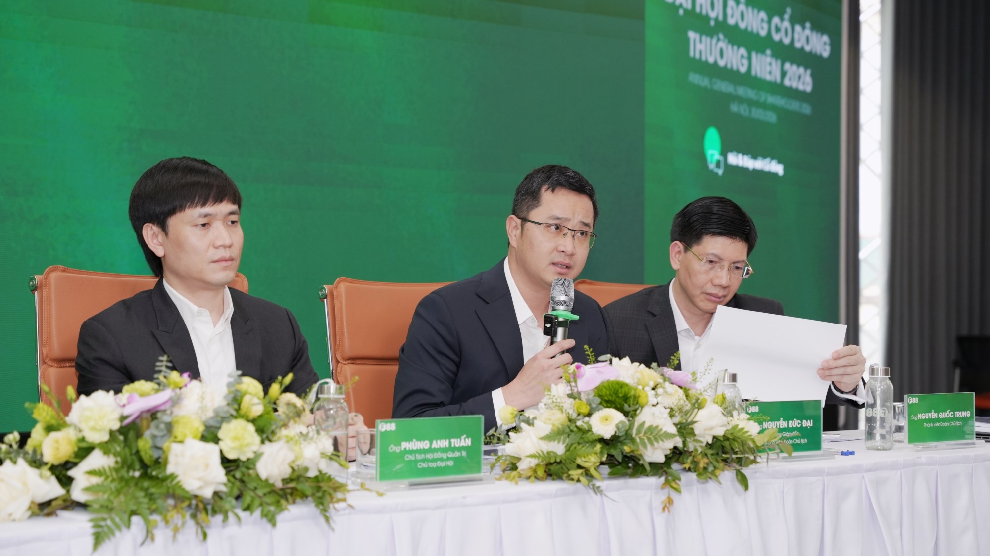 Ông Phùng Anh Tuấn - Chủ tịch HĐQT, là Chủ toạ đại hội. Ông Nguyễn Đức Đại - Tổng Giám đốc, thành viên đoàn Chủ tịch. Ngoài ra đoàn Chủ tịch còn có ông Nguyễn Quốc Trung, bà Trần Mai Thảo và ông Ngô Quang Hưng.